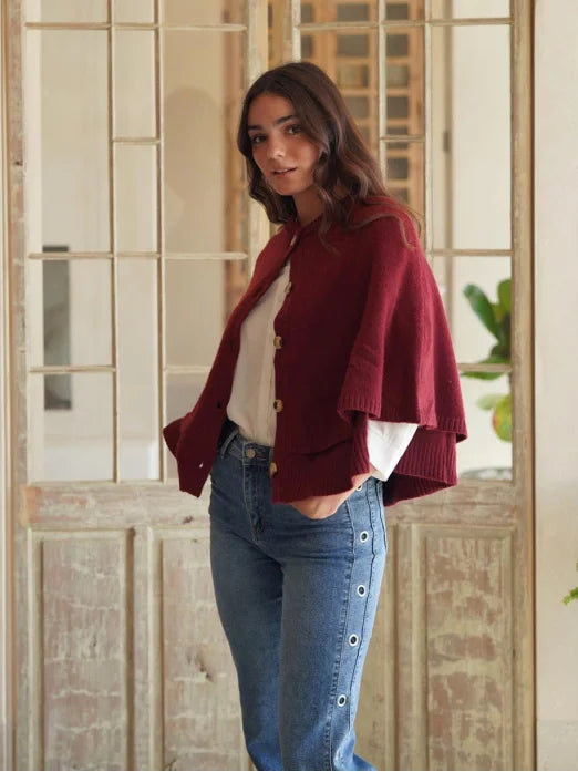 Descubre nuestro popular poncho de punto con botones, diseñado para aportar calidez y un estilo elegante. Un modelo más vendido que ofrece suavidad envolvente, caída preciosa y la versatilidad perfecta.