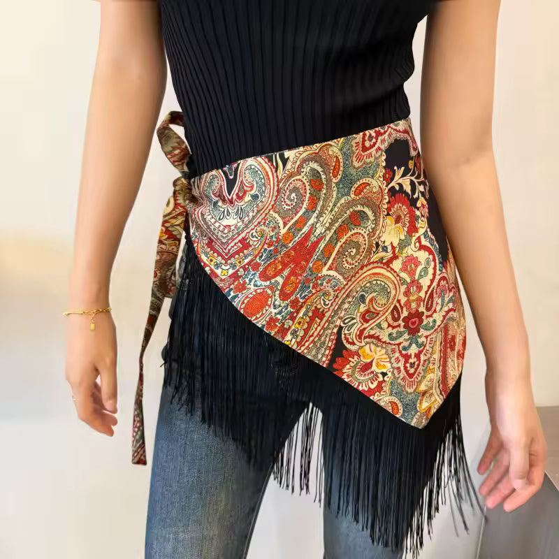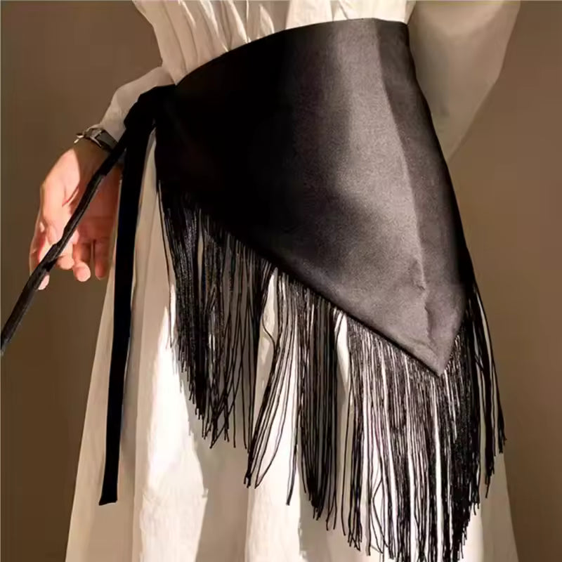 Descubre nuestro popular cinturón ancho con flecos, pensado para aportar estilo y definición. Un modelo más vendido que realza la cintura y transforma cualquier look con un acabado elegante.