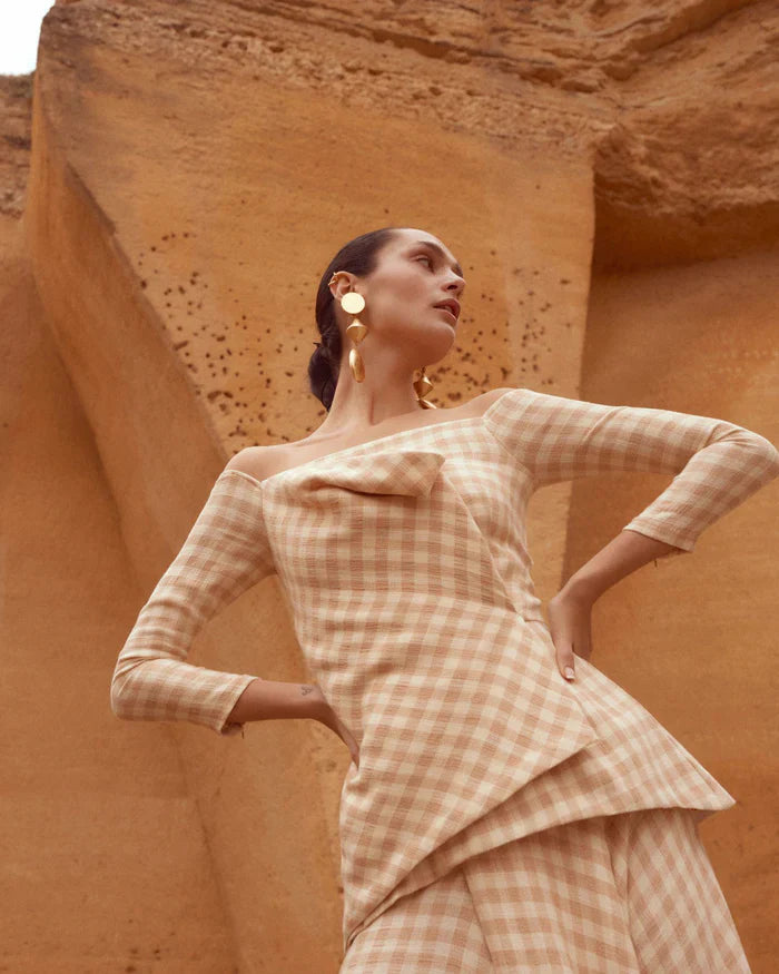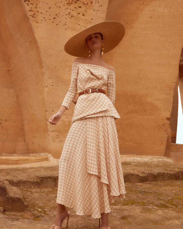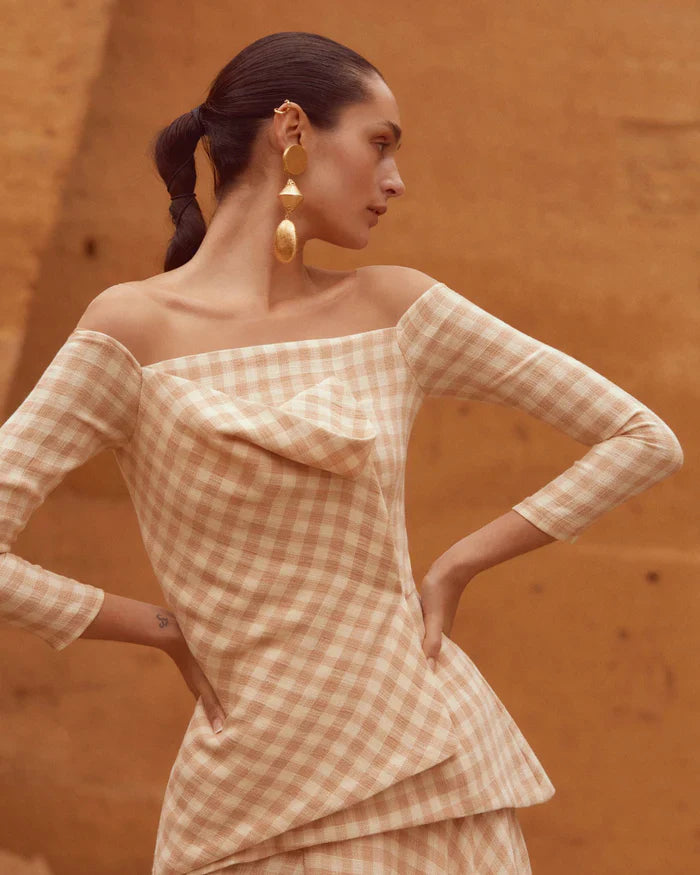 Our popular plaid set combines femininity, structure, and freshness in a sophisticated design. Ideal for celebrations, outings, or special evenings, its gingham pattern and crossover finish make it unique.